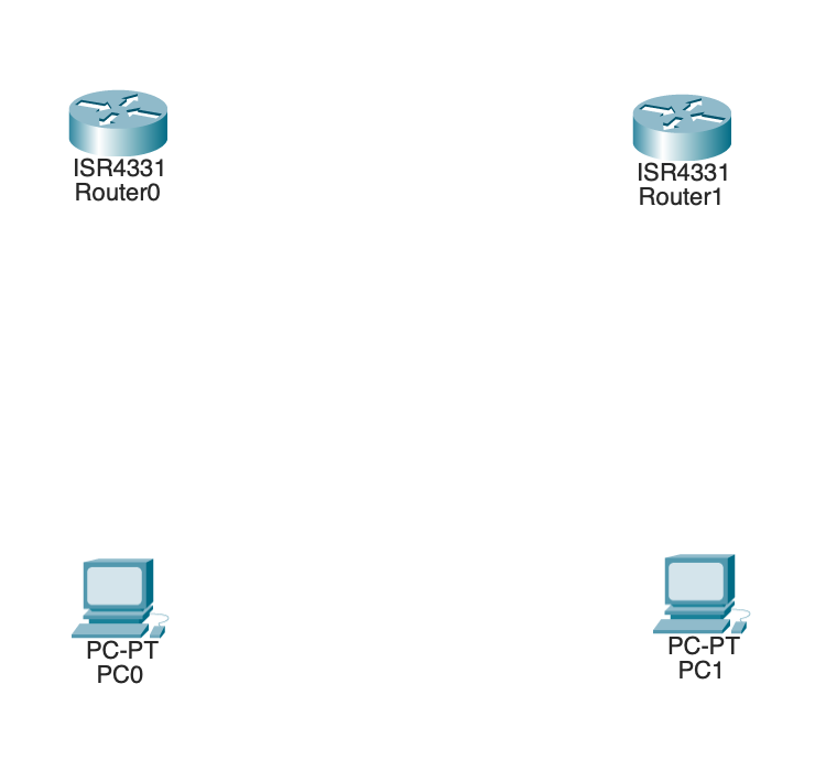 (모든 장비는 왼쪽 아래에 있고, 라우터는 첫 번째 네트워크 장비에, PC는 두 번째 종점 장비에 있다)