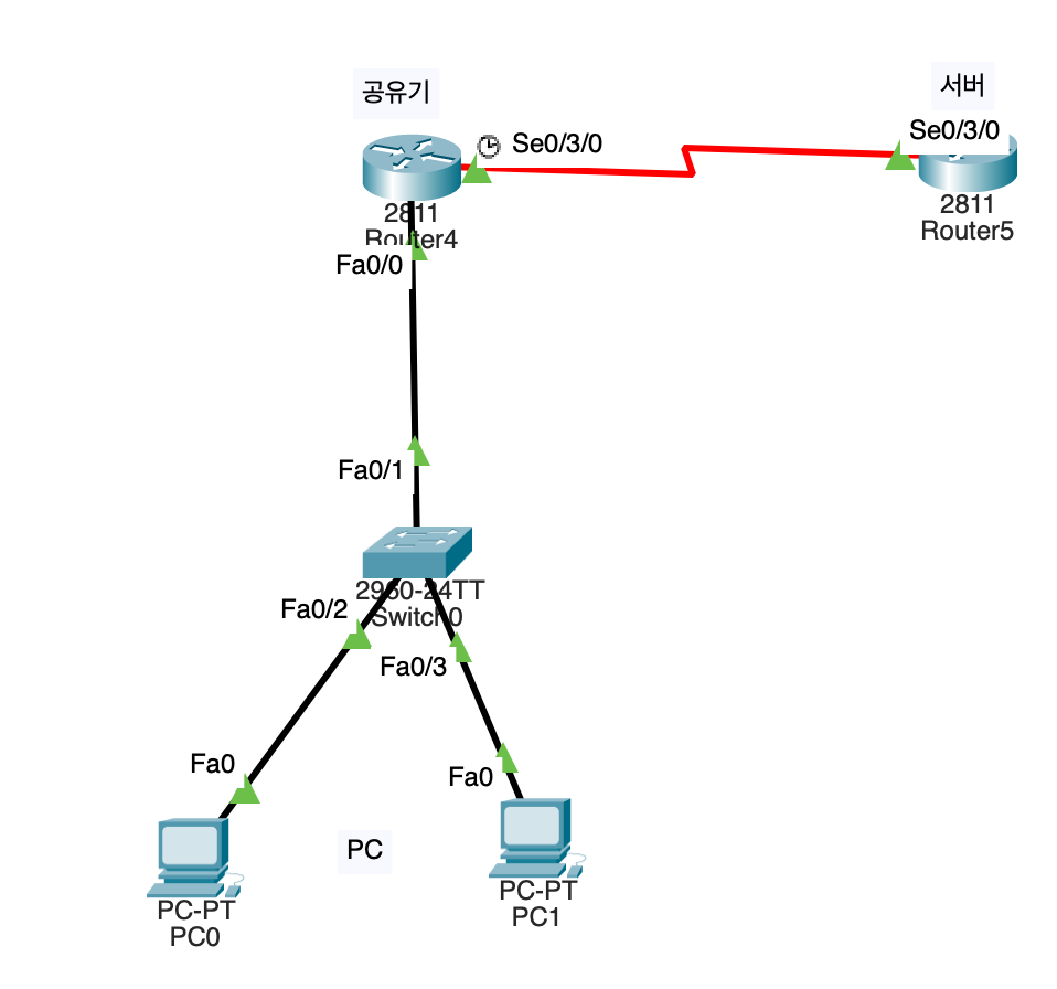 (이때 서버는 공유기의 IP주소를 알 수 있지만, PC0의 IP주소는 알 수 없다)